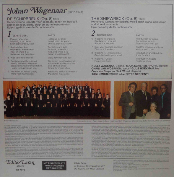 € 6.00 Media: Very Good (VG)Hoes: Good Plus (G+)Johan Wagenaar – De Schipbreuk / The Shipwreck – Humoristische Cantate Op Tekst Van De Schoolmeester (LP, Album)