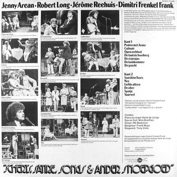 € 5.50 Media: Very Good (VG)Hoes: Very Good Plus (VG+)Jenny Arean, Robert Long, Jérôme Reehuis En Dimitri Frenkel Frank – Scherts, Satire, Songs & Ander Snoepgoed (LP, Album)