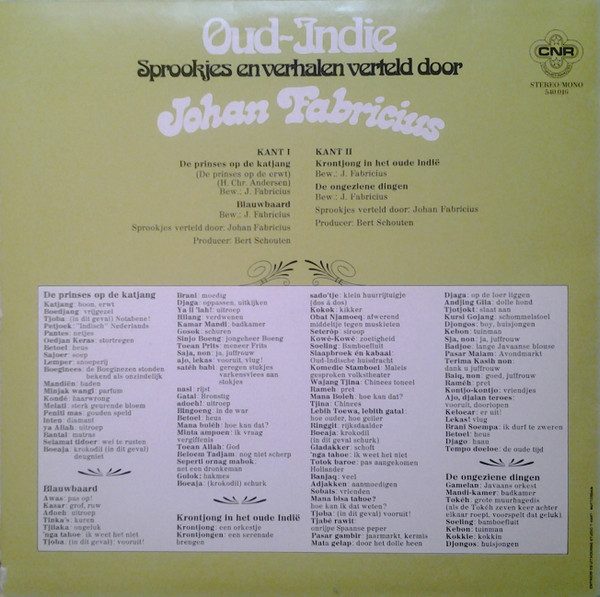 € 10.00 Media: Near Mint (NM or M-)Hoes: Very Good Plus (VG+)Johan Fabricius – Oud-Indie (LP, Album, Mono)