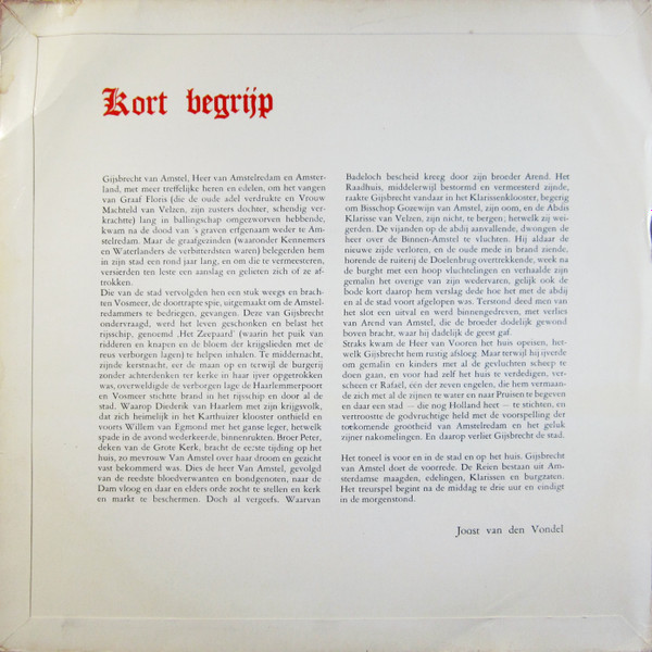 € 4.50 Media: Very Good (VG)Hoes: Very Good (VG)Joost van den Vondel* – Gijsbreght van Aemstel (2xLP, Album, Mono, Gat)