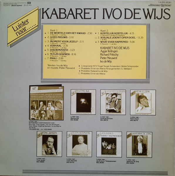 € 6.50 Media: Very Good (VG)Hoes: Very Good Plus (VG+)Kabaret Ivo de Wijs – Luister Naar … Kabaret Ivo De Wijs (LP, Album, Comp)