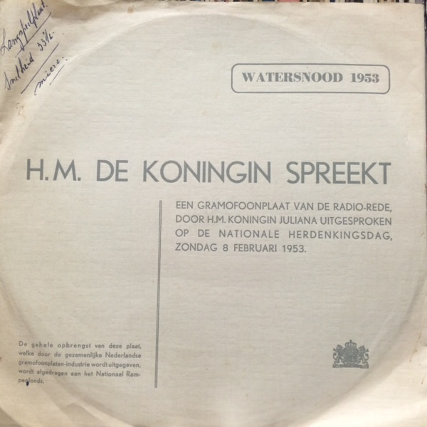 € 11.50 Media: Near Mint (NM or M-)Hoes: Very Good Plus (VG+)Juliana Louise Emma Marie Wilhemina, Prinses Van Oranje-Nassau, Hertogin Van Mecklenburg – Watersnood 1953 (10″, S/Sided, Mono)