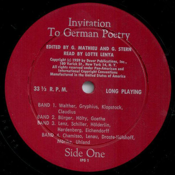 € 10.50 Media: Very Good Plus (VG+)Hoes: Very Good (VG)Lotte Lenya – Invitation To German Poetry (LP, Comp + Box)