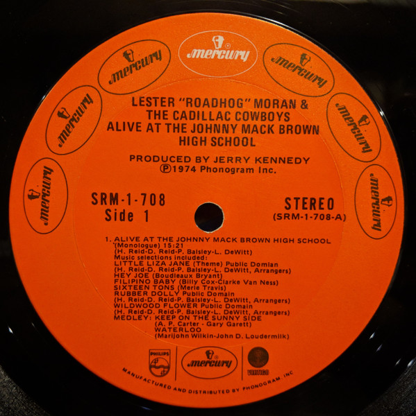 € 15.50 Media: Very Good Plus (VG+)Hoes: Very Good Plus (VG+)Lester “Roadhog” Moran & The Cadillac Cowboys – Alive At The Johnny Mack Brown High School (LP, Album)