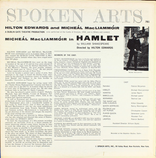 Shakespeare* : Hilton Edwards & Micheal MacLiammoir*, Dublin Gate Theatre Production – Hamlet (LP)