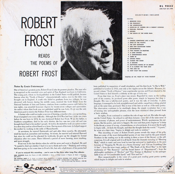 Robert Frost – Reads The Poems Of Robert Frost (LP, Mono, RE)