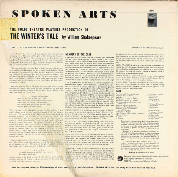 Shakespeare* : Folio Theatre Players Production*, Christopher Casson & William Styles – The Winter’s Tale (LP)