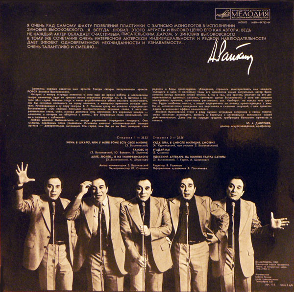 € 7.00 Media: Very Good (VG)Hoes: Good Plus (G+)Зиновий Высоковский – Зиновий Высоковский (LP, Mono, Whi)