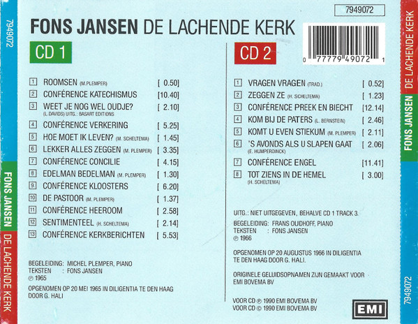€ 7.00 Media: Very Good (VG)Hoes: Very Good Plus (VG+)Fons Jansen – De Lachende Kerk (2xCD, Album, RE)