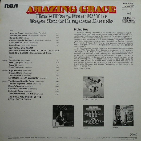 € 8.50 Media: Very Good Plus (VG+)Hoes: Very Good (VG)The Military Band Of The Royal Scots Dragoon Guards* – Amazing Grace (LP, RE)