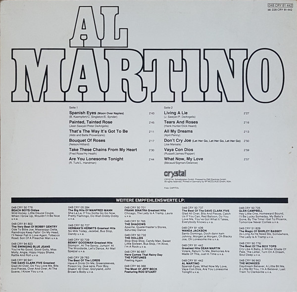 € 3.50 Media: Good (G)Hoes: Very Good (VG)Al Martino – Al Martino’s Best (LP, Comp)