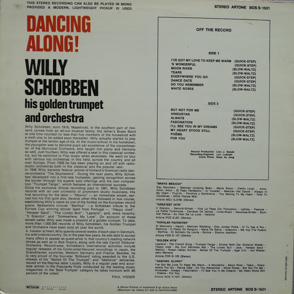 € 4.50 Media: Very Good (VG)Hoes: Good (G)Willy Schobben And His Orchestra – Dancing Along! (LP, Album, RE, Gre)