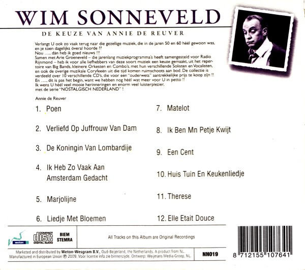 € 7.00 Media: Near Mint (NM or M-)Hoes: Very Good Plus (VG+)Wim Sonneveld – De Keuze Van Annie de Reuver (CD, Comp)