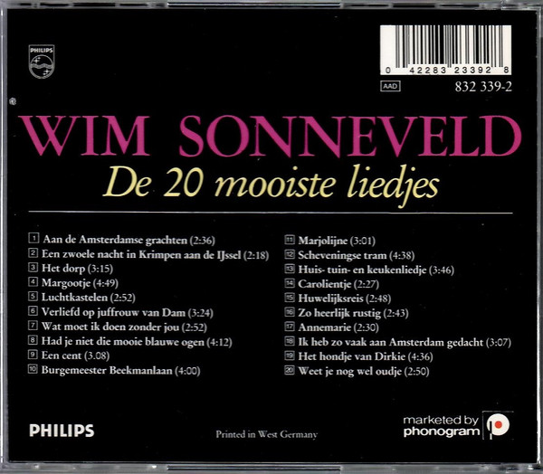 € 8.50 Media: Very Good Plus (VG+)Hoes: Very Good Plus (VG+)Wim Sonneveld – De 20 Mooiste Liedjes (CD, Comp, RP)