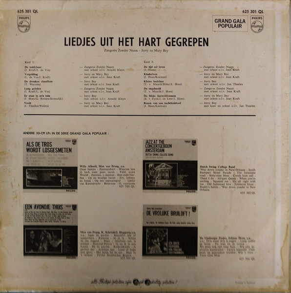 € 4.50 Media: Good Plus (G+)Hoes: Very Good Plus (VG+)Zangeres Zonder Naam – Jerry En Mary Bey – Liedjes Uit Het Hart Gegrepen (LP, Comp, Mono)