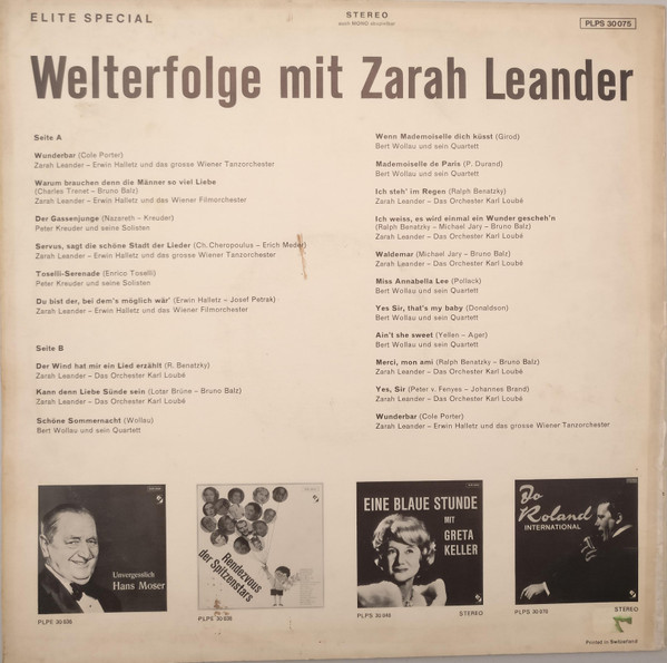 € 9.50 Media: Very Good Plus (VG+)Hoes: Very Good Plus (VG+)Zarah Leander – Wereldsuccessen Met Zarah Leander En Anderen (LP, Comp)