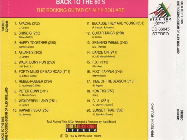 € 15.00 Media: Very Good Plus (VG+)Hoes: Very Good Plus (VG+)Alex Bollard – Back To The 60’S – The Rocking Guitar Of Alex Bollard (CD, Album)