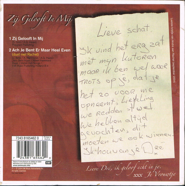 € 7.50 Media: Near Mint (NM or M-)Hoes: Very Good Plus (VG+)André Hazes – Zij Gelooft In Mij (CD, Single, RE)