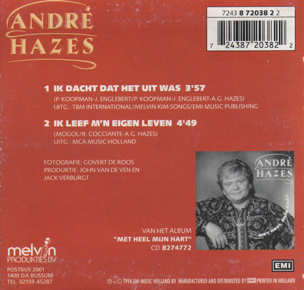 € 7.00 Media: Near Mint (NM or M-)Hoes: Very Good Plus (VG+)André Hazes – Leef Nu Maar Je Eigen Leven (CD, Single)