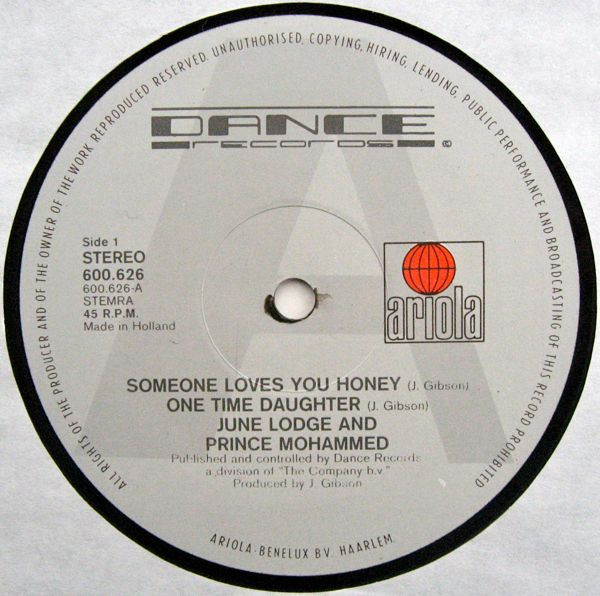 € 5.00 Media: Very Good (VG)Hoes: Very Good (VG)June Lodge And Prince Mohammed – Someone Loves You Honey/One Time Daughter (12″, Single, Gen)