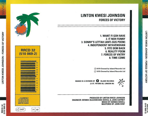 € 89.00 Media: Very Good Plus (VG+)Hoes: Very Good Plus (VG+)Linton Kwesi Johnson – Forces Of Victory (CD, Album, RE)