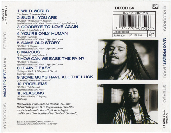 € 4.00 Media: Good Plus (G+)Hoes: Very Good (VG)Maxi Priest – Maxi (CD, Album, RP)