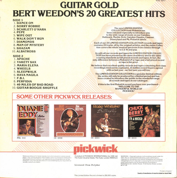 € 2.95 Media: Good Plus (G+)Hoes: Very Good Plus (VG+)Bert Weedon – Guitar Gold – Bert Weedon’s 20 Greatest Hits (LP, Comp)