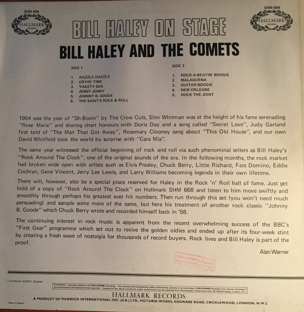 € 7.50 Media: Near Mint (NM or M-)Hoes: Very Good Plus (VG+)Bill Haley And The Comets* – Bill Haley On Stage (LP, Album, RE)