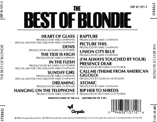 € 7.50 Media: Near Mint (NM or M-)Hoes: Very Good (VG)Blondie – The Best Of Blondie (CD, Comp, RE)