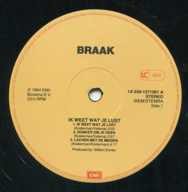 € 2.95 Media: Very Good (VG)Hoes: Good (G)Braak – Ik Weet Wat Je Lust (LP, Album)