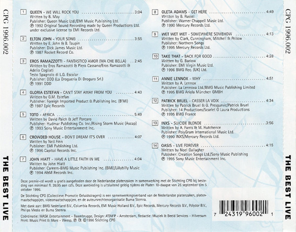 € 7.50 Media: Near Mint (NM or M-)Hoes: Very Good Plus (VG+)Various – The Best Live (CDi, Comp)