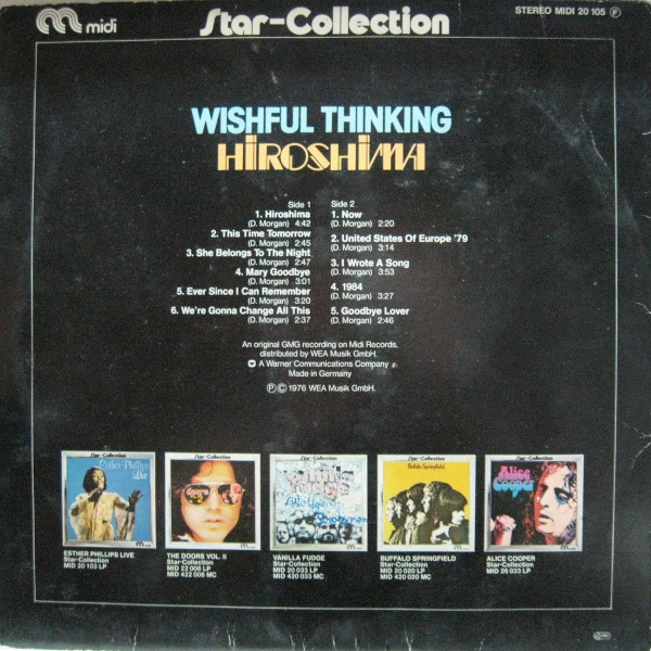 € 5.50 Media: Very Good (VG)Hoes: Very Good (VG)Wishful Thinking – Hiroshima (LP, Album, RE)