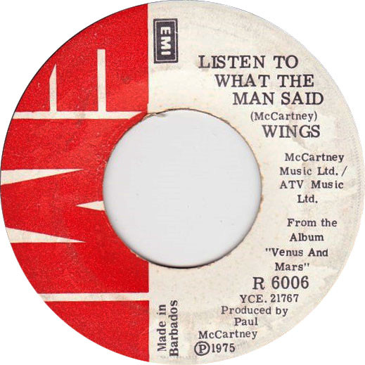 € 6.50 Media: Very Good Plus (VG+)Wings (2) – Listen To What The Man Said (7″, Single)