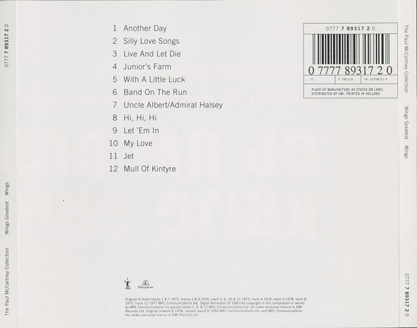 € 49.00 Media: Near Mint (NM or M-)Hoes: Near Mint (NM or M-)Wings (2) – Wings Greatest (CD, Comp, RE, RM)