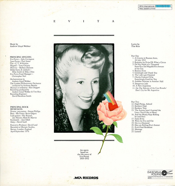 € 5.00 Media: Very Good (VG)Hoes: Very Good Plus (VG+)Andrew Lloyd Webber And Tim Rice – Evita (2xLP, Album, Gat)