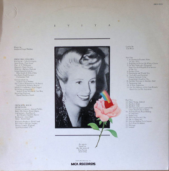 € 9.50 Media: Very Good Plus (VG+)Hoes: Very Good Plus (VG+)Andrew Lloyd Webber And Tim Rice – Evita (2xLP, Album, Gat)