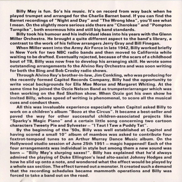 € 7.00 Media: Very Good Plus (VG+)Hoes: Very Good Plus (VG+)Billy May – The Best Of “The Capitol Years” (CD, Comp, Mono)