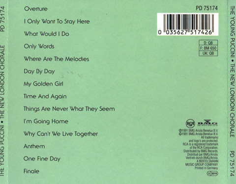 € 4.50 Media: Good Plus (G+)Hoes: Very Good Plus (VG+)The New London Chorale* Featuring Marilyn David (2), Amy Vanmeenen, Tony Jackson, Gordon Neville – The Young Puccini (A Tom Parker Project) (CD, Album)