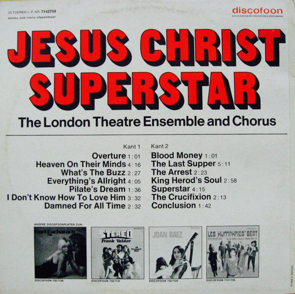 € 6.50 Media: Very Good Plus (VG+)Hoes: Very Good (VG)The London Theatre Ensemble And Chorus – Jesus Christ Superstar (LP)