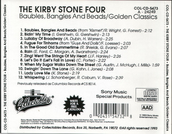 € 10.00 Media: Very Good Plus (VG+)Hoes: Very Good Plus (VG+)The Kirby Stone Four – Baubles, Bangles And Beads (CD, RM)
