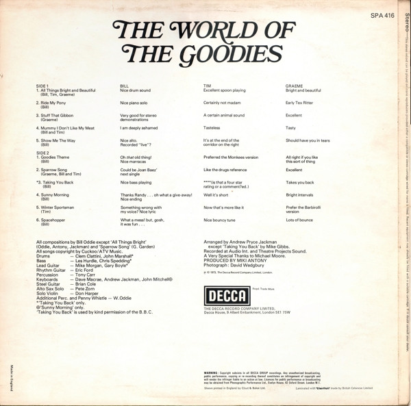 € 7.50 Media: Very Good (VG)Hoes: Very Good Plus (VG+)The Goodies – The World Of The Goodies (LP)