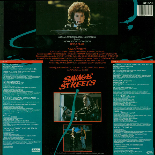 € 7.50 Media: Very Good Plus (VG+)Hoes: Very Good Plus (VG+)Various – Savage Streets – Music From The Original Motion Picture Soundtrack (LP)