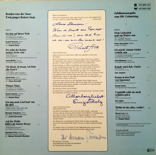 € 5.00 Media: Very Good Plus (VG+)Hoes: Very Good Plus (VG+)Various – Rendezvous Der Stars – Ewig Junger Robert Stolz (LP, Comp)