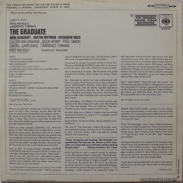 € 8.50 Media: Very Good Plus (VG+)Hoes: Very Good Plus (VG+)Various – The Graduate (The Original Soundtrack Recording) (LP, Album)