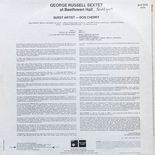 € 47.00 Media: Very Good (VG)Hoes: Very Good (VG)The George Russell Sextet Guest Artist – Don Cherry – At Beethoven Hall (LP, Album)