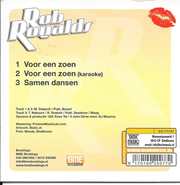 € 5.00 Media: Very Good Plus (VG+)Hoes: Very Good Plus (VG+)Rob Ronalds – Voor Een Zoen (CD, Single)