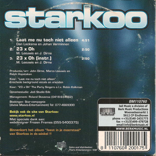 € 5.00 Media: Very Good (VG)Hoes: Very Good Plus (VG+)Starkoo – Laat Me Nu Toch Niet Alleen (CD, Single)