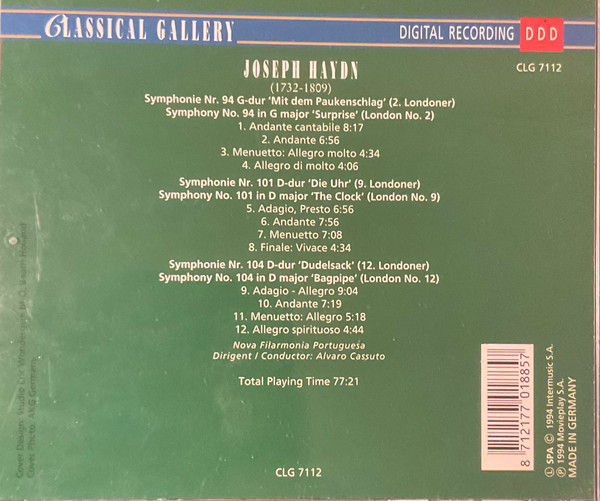 Álvaro Cassuto, Nova Filarmonia Portuguesa – Joseph Haydn – Symphonies No 94 ‘Surprise’, No 101 ‘The Clock’, No 104 ‘Bagpipe’ (CD)