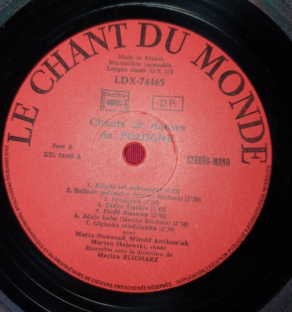 € 9.00 Media: Near Mint (NM or M-)Marian Blicharz – Chants Et Danses de Pologne (LP)