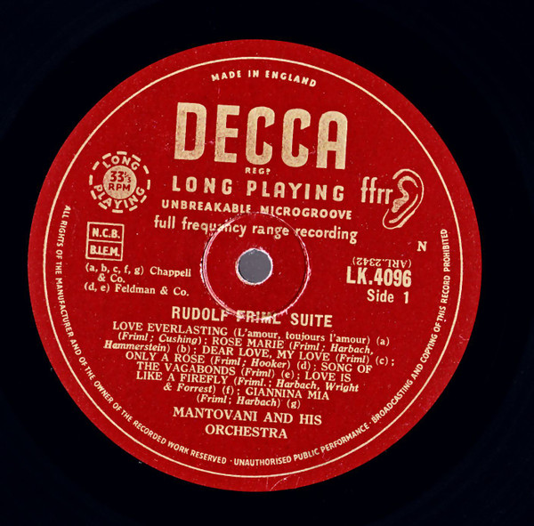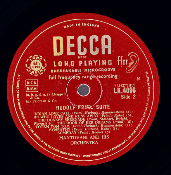 € 9.50 Media: Near Mint (NM or M-)Hoes: Very Good Plus (VG+)Mantovani And His Orchestra – Rudolf Friml Suite (LP, Album, Mono)